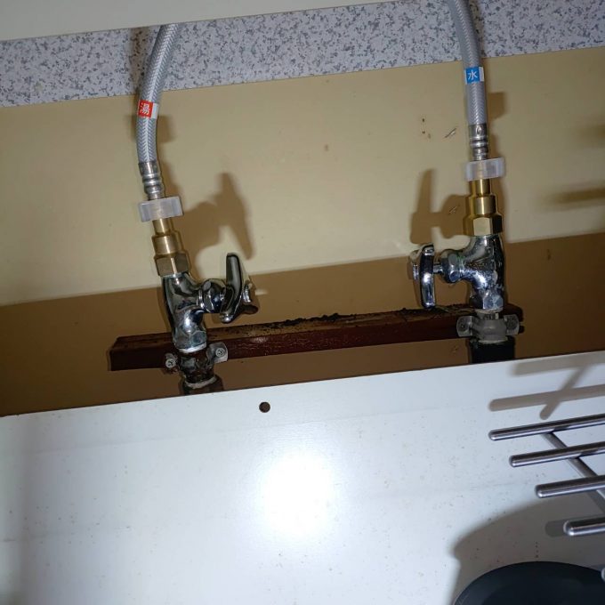 他業者で設置されたものでトラブルになることもあるので何度もご案内させて頂きますが、一部の取付直しと劣化が進んでいた止水栓の交換をご依頼となり作業を開始。