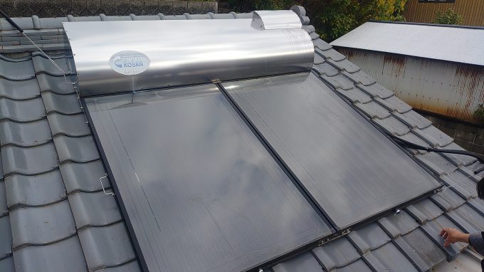 屋根から水漏れしているという内容でご訪問させていただき、確認すると太陽熱温水器の配管接続部より水漏れしていました。